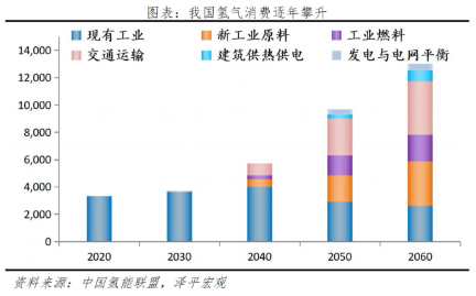 根據(jù)《氫能產(chǎn)業(yè)發(fā)展中長(zhǎng)期規(guī)劃(2021-2035 年)》“十四五”時(shí)期的發(fā)展目標(biāo),燃料電池車輛保有量約5萬(wàn)輛,部署建設(shè)一批加氫站,可再生能源制氫量達(dá)到10-20萬(wàn)噸/年,實(shí)現(xiàn)二氧化碳減排100-200萬(wàn)噸/年。到2050年,氫氣需求量將接近6000萬(wàn)噸,實(shí)現(xiàn)二氧化碳減排約7億噸,氫能在我國(guó)終端能源體系中占比超過(guò)10%,產(chǎn)業(yè)鏈年產(chǎn)值達(dá)到12萬(wàn)億元,成為引領(lǐng)經(jīng)濟(jì)發(fā)展的新增長(zhǎng)極。