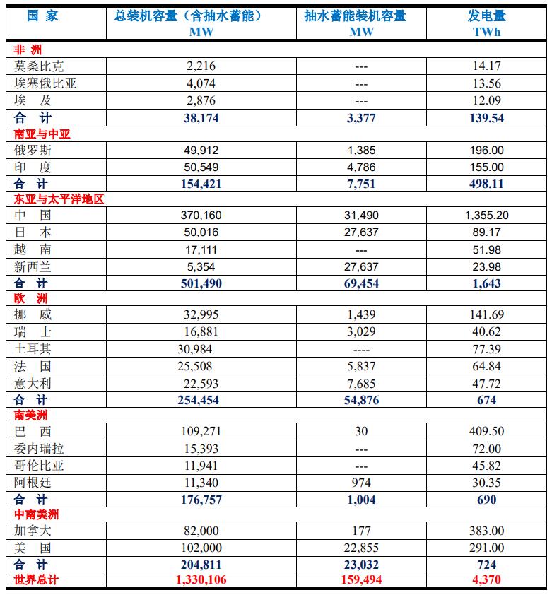 2020年世界上水力發(fā)電最多的地區(qū)是東亞和太平洋地區(qū),占全球總量的1,643/4,370=37.6%;而其中中國尤為突出,占全球總量的31%,占本地區(qū)的1,355.20/1,643=82.5%。