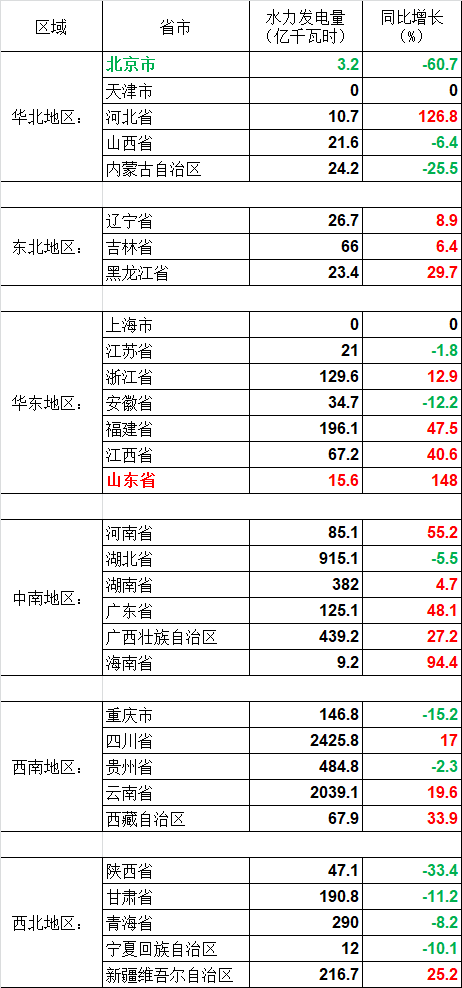 在29個(gè)統(tǒng)計(jì)到了水力發(fā)電量的省區(qū)中.,1-8月份,我國(guó)共有12個(gè)省區(qū)水力發(fā)電量同比下降,其中北京市水力發(fā)電量降幅最大,達(dá)60.7%,降幅進(jìn)一步加大。和1-7月份一樣,山東省和河北省是我國(guó)唯二水力發(fā)電量同比增速超100%的省份,增速依次為148%、126.8%,增幅均有所擴(kuò)大。