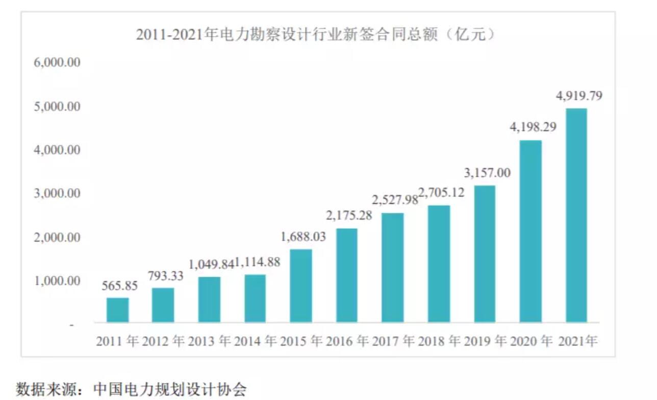 招股書顯示,根據(jù)中國(guó)電力規(guī)劃設(shè)計(jì)協(xié)會(huì)發(fā)布的電力勘察設(shè)計(jì)行業(yè)各年度統(tǒng)計(jì)數(shù)據(jù)顯示,2021年,電力勘察設(shè)計(jì)行業(yè)實(shí)現(xiàn)營(yíng)業(yè)收入2,684.21億元,同比增長(zhǎng)26.82%。