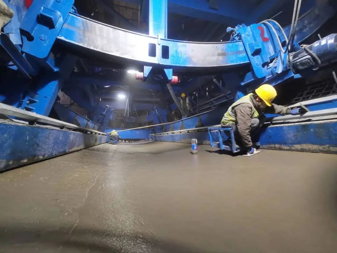 有壓段全斷面首倉混凝土澆筑成功拉哇水電站泄洪洞有壓段隧洞段洞長456.60米,洞室埋設85米,屬世界級埋深的泄洪洞。施工過程中,面臨著保證混凝土密實度、表面平整度、光滑度、減少氣泡和裂縫等施工重難點,為滿足提前半年發(fā)電目標要求,項目部全力加快施工進度,并做好已澆筑底板的表面保護工作。相比較于泄洪洞無壓段首倉,有壓段全斷面首倉混凝土澆筑首次采用全圓針梁底拱橫向滑模襯砌鋼模臺車,以此達到支模、收模良好效果。