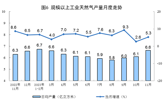 1—11月份,生產(chǎn)天然氣2096億立方米,同比增長6.0%。進口天然氣10740萬噸,同比增長8.5%。