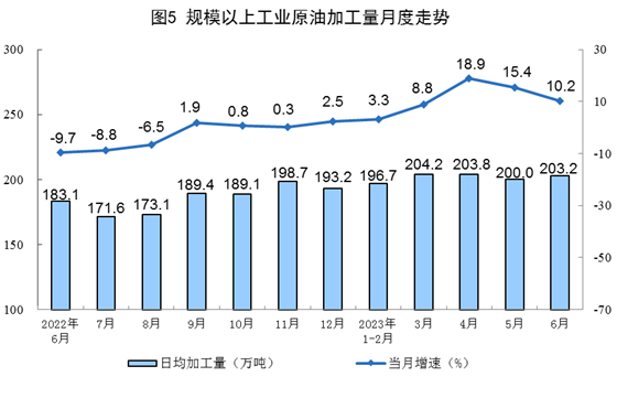 原油生產(chǎn)保持平穩(wěn),進(jìn)口快速增長,原油加工較快增長。上半年,生產(chǎn)原油10505萬噸,同比增長2.1%。進(jìn)口原油28208萬噸,同比增長11.7%。加工原油36358萬噸,同比增長9.9%。6月份,生產(chǎn)原油1752萬噸,同比增長1.9%。加工原油6095萬噸,同比增長10.2%。