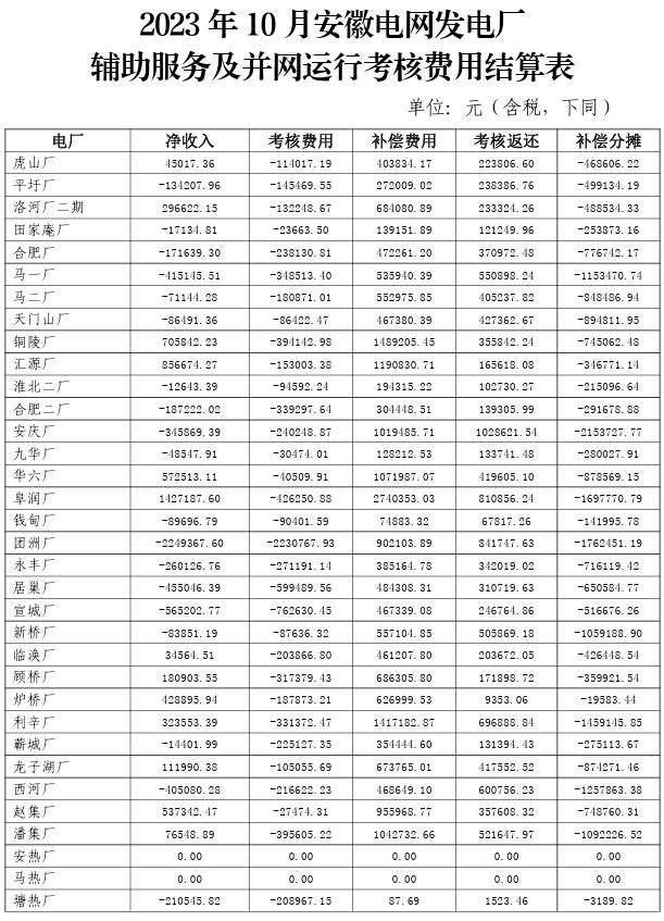 附件:2023年10-12月安徽電網(wǎng)發(fā)電廠(chǎng)輔助服務(wù)及并網(wǎng)運(yùn)行考核費(fèi)用結(jié)算表