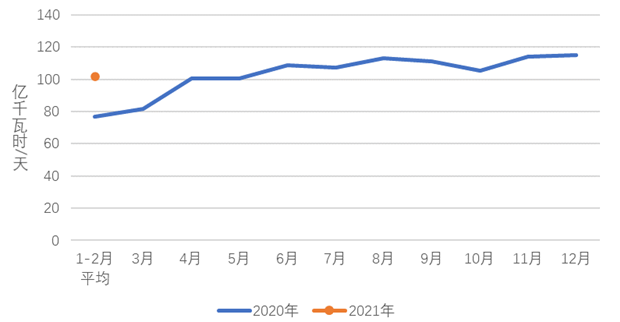 1-2月,全國全社會用電量12588億千瓦時(shí),同比增長22.2%。
