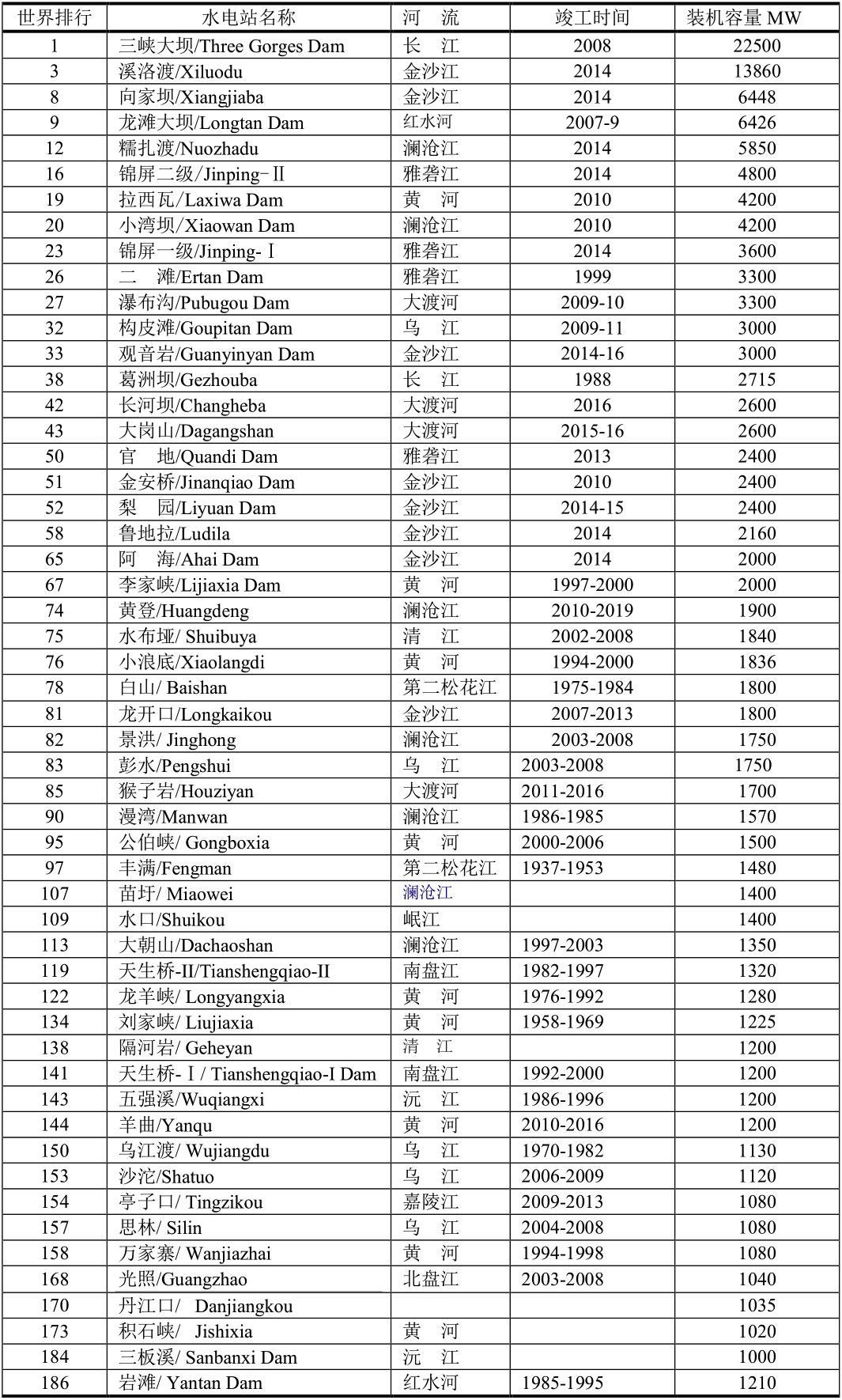 世界上水電站裝機(jī)容量在1000MW以上的有187個(gè)水力發(fā)電站中,其中中國(guó)占據(jù)了29座,居世界之首。在中國(guó)29座水力發(fā)電站之中,長(zhǎng)江流域就占有16座。