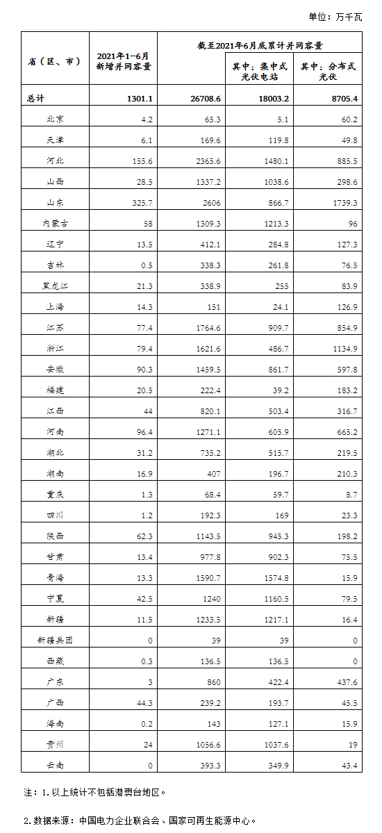 2021年上半年全國(guó)光伏發(fā)電建設(shè)運(yùn)行情況