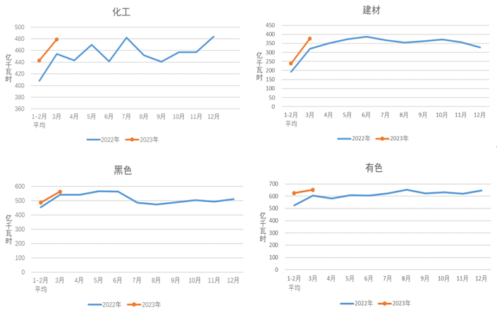 圖4 2022、2023年重點行業(yè)分月用電量情況
