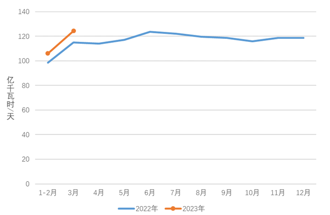 圖3 2022、2023年分月制造業(yè)日均用電量