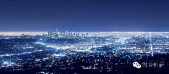 目前將可再生能源引入現(xiàn)有電網(wǎng)和配套基礎(chǔ)設(shè)施是一個(gè)非常巨大的挑戰(zhàn),因此要采取逐步將現(xiàn)有電網(wǎng)智能化的方法。下圖展示的是美國(guó)洛杉磯夜景,可以看出,它的電網(wǎng)是集成式的,區(qū)域也比較大;當(dāng)然上海的應(yīng)該會(huì)大好幾倍,因?yàn)樯虾5拿娣e更大。