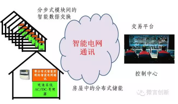 分布式微電網(wǎng)上的能量和產(chǎn)生的數(shù)據(jù),通過(guò)智能電網(wǎng)和因特網(wǎng)實(shí)現(xiàn)互聯(lián)互通,將相關(guān)信息發(fā)布到交易平臺(tái)上。微電網(wǎng)本身也由很多小模塊組成,集結(jié)在一起能夠做到在當(dāng)?shù)叵牡羲a(chǎn)生的能量。