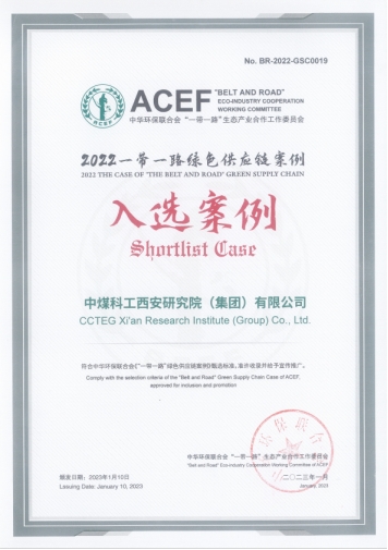 2023年,中國煤科西安研究院的“推動企業(yè)轉(zhuǎn)型升級 促進產(chǎn)業(yè)綠色發(fā)展”案例成功入選“一帶一路”綠色供應(yīng)鏈案例。