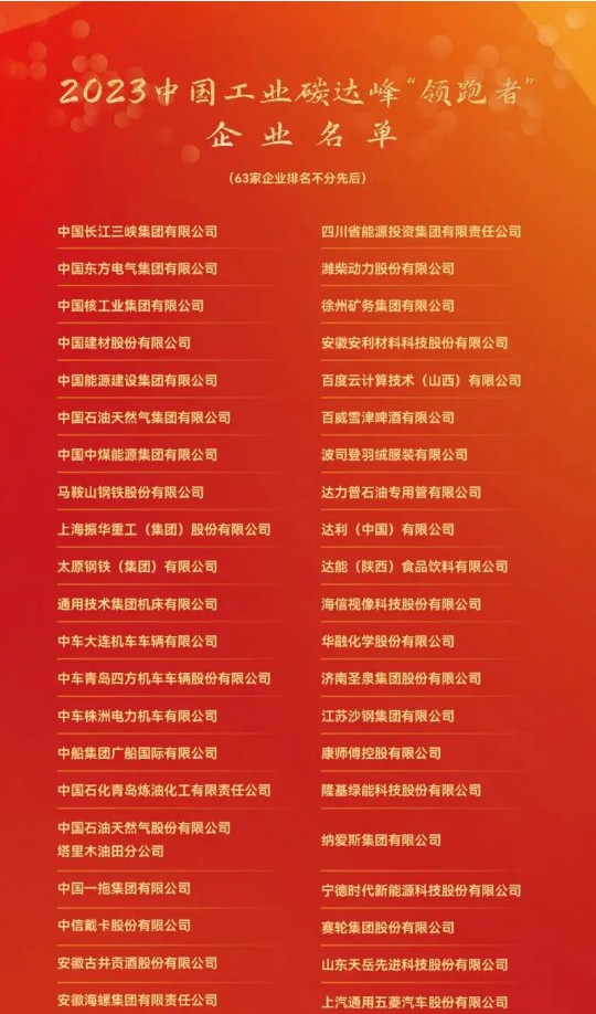 2023中國工業(yè)碳達峰“領跑者”企業(yè)名單