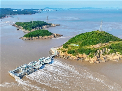 8月23日,浙江省舟山市岱山縣秀山島海域,全球最大兆瓦級(jí)潮流能發(fā)電機(jī)組LHD1600“奮進(jìn)號(hào)”正在平穩(wěn)運(yùn)行,源源不斷地將來(lái)自大海的清潔能源通過(guò)國(guó)家電網(wǎng)輸送到千家萬(wàn)戶。