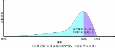 就上升段和下降段的趨勢總體來看,年份時(shí)間越長、峰年峰值越高,由上升曲線和下降曲線所圍成的區(qū)域面積就越大,積累的溫室氣體總量就越多,溫室效應(yīng)后果就越嚴(yán)重。由此,必然導(dǎo)致平衡排放與吸收的難度,以及完成吸收任務(wù)的困難加大,時(shí)間拉長。