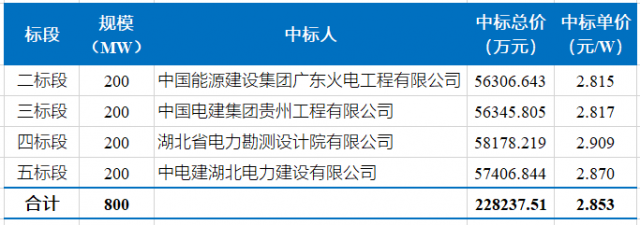 該項(xiàng)目EPC中標(biāo)價(jià)格在2.81~2.91元/W之間,如下表所示。