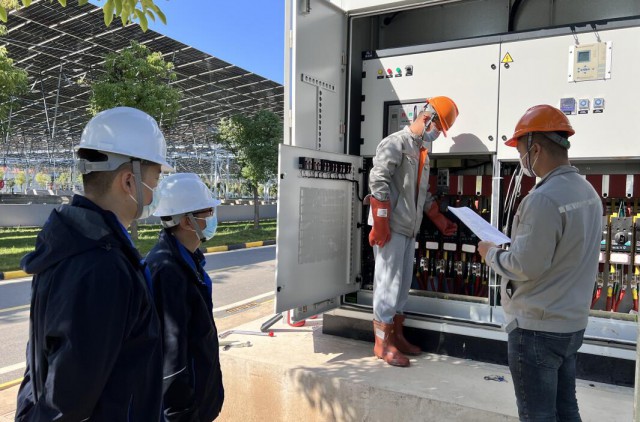 北湖污水處理廠承擔著半個武昌城的污水處理工作,為了確保光伏電站并網(wǎng)過程中及投運后污水處理廠的正常運營,綠色產業(yè)分公司的技術攻關、項目管理、運維保障小組主動擔當作為,與北湖污水處理廠、武漢市供電公司等相關部門反復溝通,全程參與發(fā)電站并網(wǎng)方案的制定,以并網(wǎng)發(fā)電期間最大程度降低對污水處理廠運行的影響為目標,以最短的時間、最優(yōu)的送電方式,最終制定并網(wǎng)發(fā)電實施方案,并保障了光伏并網(wǎng)發(fā)電期間廠區(qū)生產“零影響”。