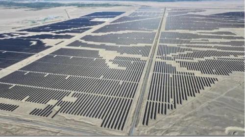 葉城50萬(wàn)千瓦光伏發(fā)電項(xiàng)目占地面積15000畝,今年4月30日正式開工,建設(shè)有1座光伏發(fā)電站、1座220千伏升壓匯集站,配套建設(shè)1座500兆瓦時(shí)儲(chǔ)能站。