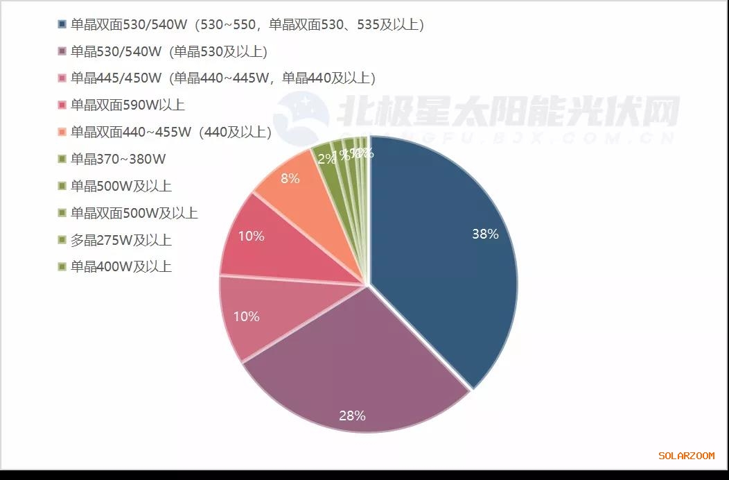 具體來看,2021年1月12日,中核匯能率先開標(biāo)2021年度光伏組件集中采購,隆基、東方日升、天合3家擬瓜分了1.3GW組件大單,其中535/540W組件招標(biāo)規(guī)模912.7MW,占比69%。
