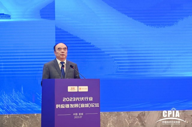 2023年7月19日,由中國光伏行業(yè)協(xié)會、宣城市人民政府主辦的“2023光伏行業(yè)供應(yīng)鏈發(fā)展(宣城)論壇”在安徽宣城順利舉行。中國光伏行業(yè)協(xié)會理事長曹仁賢出席論壇并致辭。