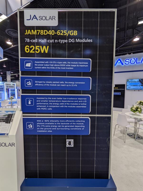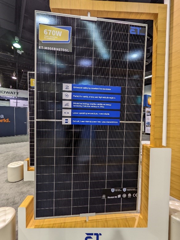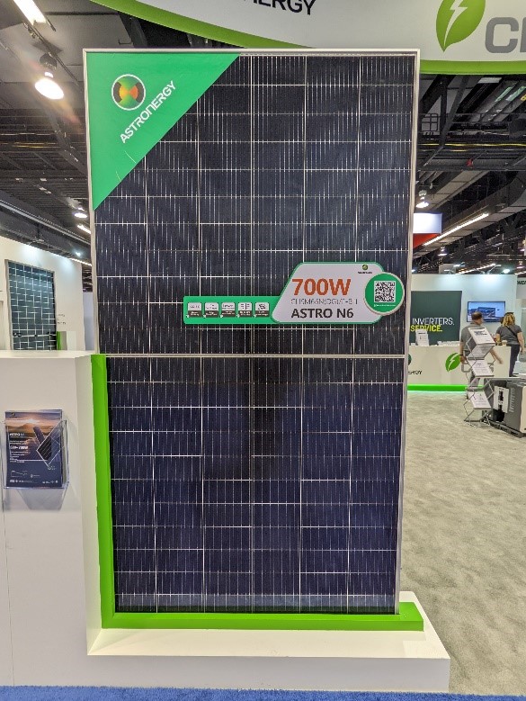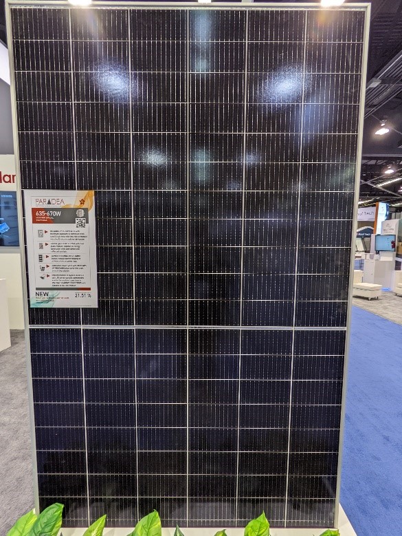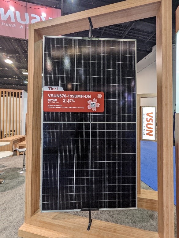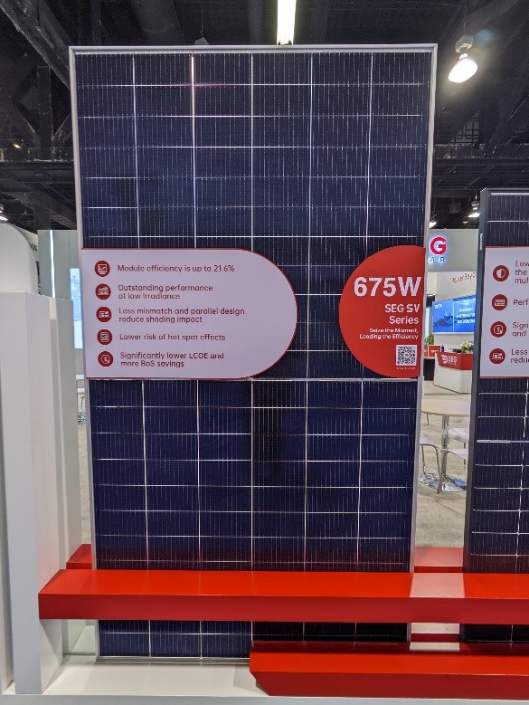 據(jù)不完全統(tǒng)計,在本次RE+展會中,中國領(lǐng)軍企業(yè)天合光能、阿特斯、正泰,海外企業(yè)韓華、SEG、Waaree等10多家光伏領(lǐng)先企業(yè)紛紛推出600W+產(chǎn)品。600W+產(chǎn)品在北美已經(jīng)蔚然成風,成先進組件的代表。