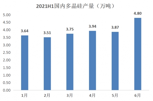 從硅業(yè)分會2021年上半年預(yù)計的硅片產(chǎn)量來看,硅料需求量合計約29.8萬噸,而國內(nèi)供給量約為28.1萬噸,供給與需求大致處于緊平衡狀態(tài)。硅片產(chǎn)能的超前超量釋放導致硅料總體需求激增,硅料企業(yè)上半年基本都是滿產(chǎn)運營狀態(tài),部分硅料企業(yè)個別月份綜合開工率更是高達111%。