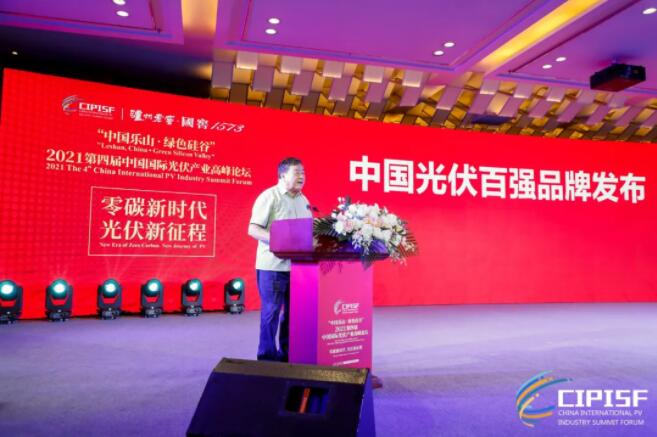 國(guó)務(wù)院原參事、中國(guó)可再生能源學(xué)會(huì)理事長(zhǎng)石定寰發(fā)布“中國(guó)光伏百?gòu)?qiáng)品牌”。