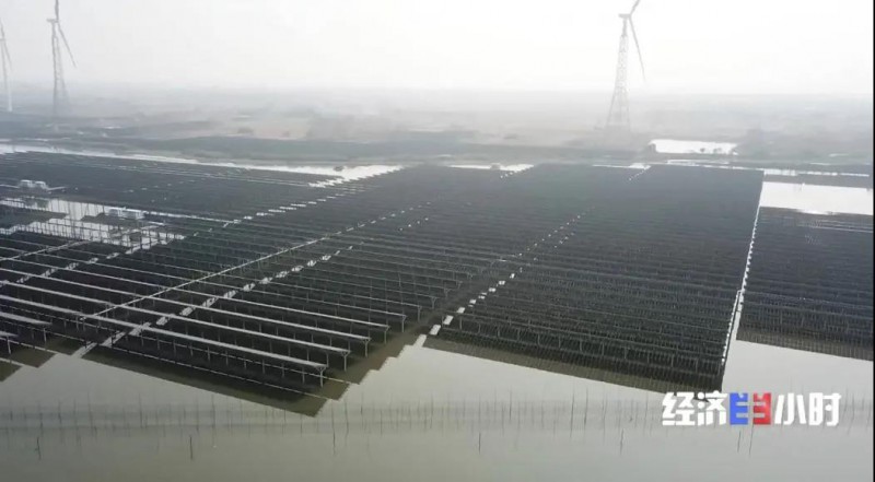 這個漁光一體光伏電站,光伏板能遮擋陽光,降低水面溫度,減少水分蒸發(fā)的同時抑制藻類生長,為魚蝦提供更好的生長環(huán)境。