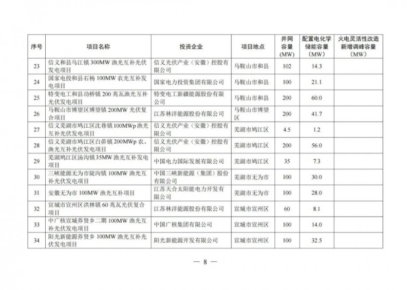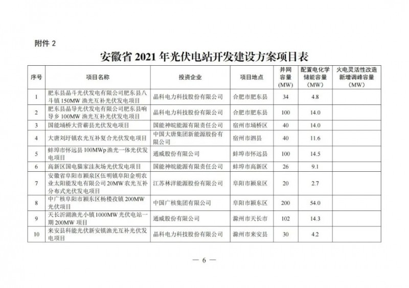 安徽能源局發(fā)布6GW風、光項目優(yōu)選名單