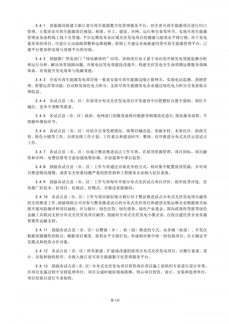 各試點(diǎn)縣(市、區(qū))應(yīng)成立整縣推進(jìn)試點(diǎn)工作專班,在屋頂資源管理、項(xiàng)目招標(biāo)、項(xiàng)目融資和并網(wǎng)、電費(fèi)結(jié)算等方面加強(qiáng)統(tǒng)籌協(xié)調(diào),并加強(qiáng)事中事后監(jiān)管。