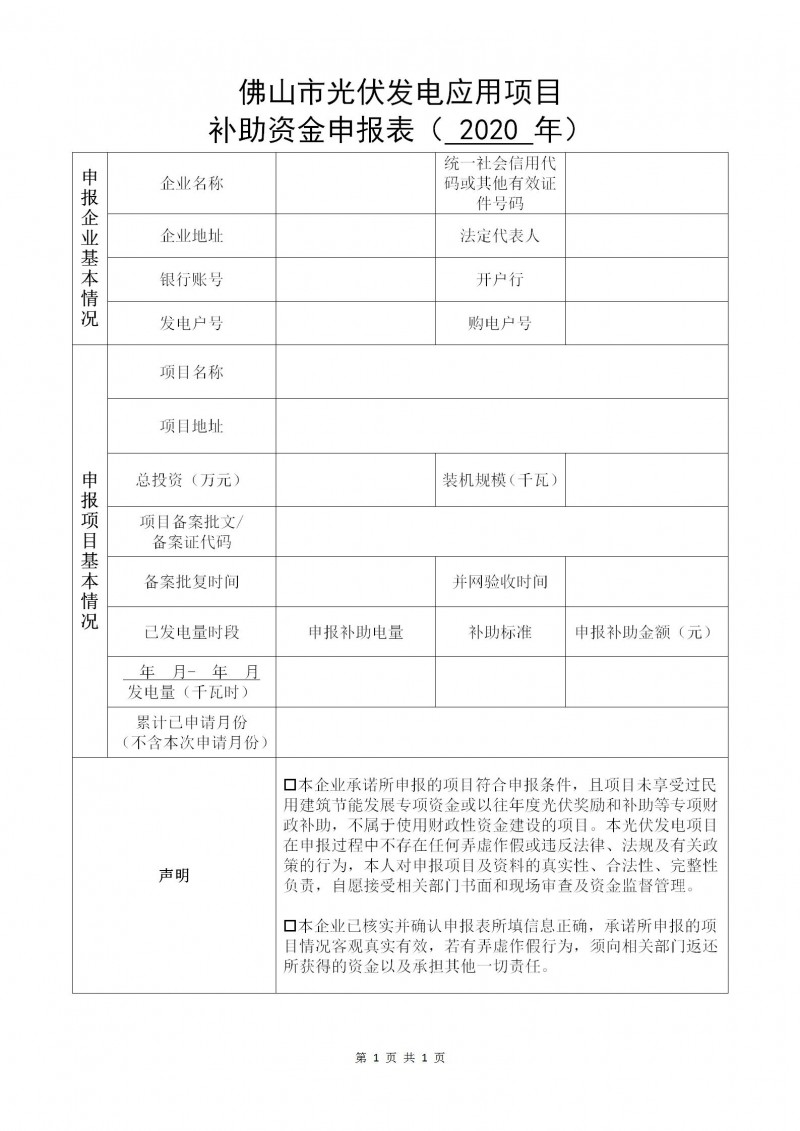 根據(jù)《佛山市人民政府辦公室關(guān)于對(duì)2016—2018年建成光伏發(fā)電應(yīng)用項(xiàng)目進(jìn)行獎(jiǎng)勵(lì)和補(bǔ)助的通知》(佛府辦〔2016〕57號(hào),見附件1)、《佛山市發(fā)展和改革局佛山市財(cái)政局關(guān)于修訂佛山市分布式光伏發(fā)電項(xiàng)目補(bǔ)助資金管理辦法(2019—2020年)的通知》(佛發(fā)改新能〔2020〕7號(hào),見附件2)的文件要求,現(xiàn)開展我區(qū)2020年度光伏補(bǔ)助資金申報(bào)工作,并將有關(guān)事項(xiàng)通知如下: