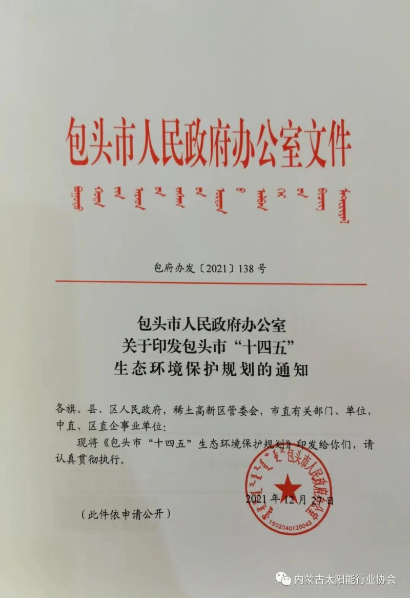 近日,包頭市人民政府下發(fā)《包頭市“十四五”生態(tài)環(huán)境保護規(guī)劃》。根據(jù)規(guī)劃內(nèi)容,“十四五”期間,包頭市著力構建綠色低碳能源供給體系,推動新能源發(fā)展,重點推進風能、光伏、氫能產(chǎn)業(yè)發(fā)展,探索核能綜合利用,積極促進儲能與新能源融合發(fā)展。以集中式和分布式并舉加大風電、光伏等開發(fā)建設力度,延伸新能源鏈條,以風能、光能、氫能、核能、儲能為龍頭,謀劃氫能發(fā)展路徑,開展氫能關鍵技術攻關,拓展氫源渠道,推進加氫基礎設施建設,推廣氫能多領域利用,促進氫能產(chǎn)業(yè)集群發(fā)展,打造新能源裝備制造和相關技術服務產(chǎn)業(yè)集群。以達茂旗創(chuàng)建全市可再生能源綜合應用示范區(qū)為基礎,全面推動“國家級清潔能源示范基地建設”,重點在達茂、固陽、白云以及土右、石拐的采煤沉陷區(qū)、露天礦坑、排土場、鹽堿地等,建設一批“源網(wǎng)荷儲一體化”、“風光儲一體化”項目,到2025年通過優(yōu)化能源生產(chǎn)結果、加強能源領域新型產(chǎn)業(yè)布局,將包頭市打造成較為完善的現(xiàn)代能源經(jīng)濟產(chǎn)業(yè)基地,力爭實現(xiàn)風、光等新能源裝機容量達到1300萬千瓦以上。