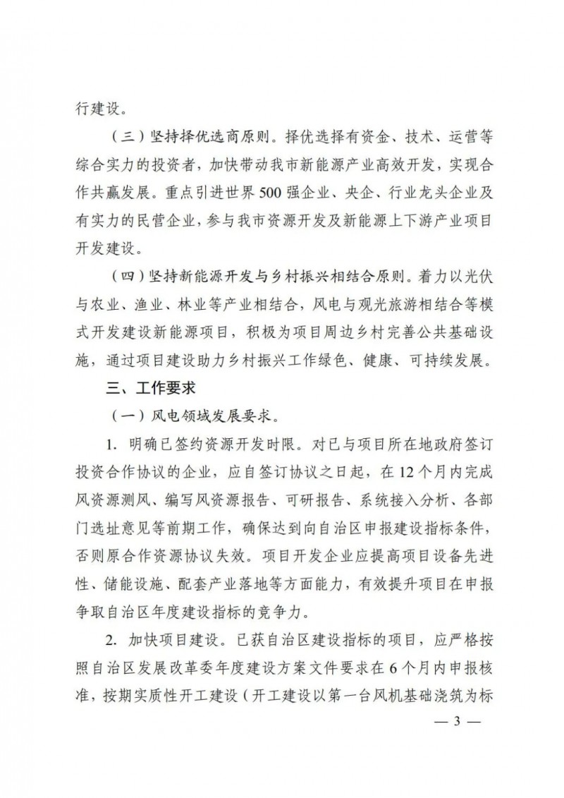 對已獲自治區(qū)建設(shè)指標(biāo)的項(xiàng)目,應(yīng)嚴(yán)格按照自治區(qū)發(fā)展改革委年度建設(shè)方案文件要求按期實(shí)質(zhì)性開工建設(shè)、完工和實(shí)現(xiàn)并網(wǎng)發(fā)電,否則取消項(xiàng)目建設(shè)權(quán)限。
