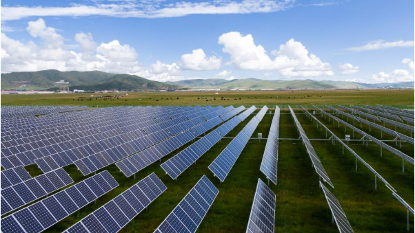 位于青海省海南藏族自治州共和縣塔拉灘的千萬千瓦級生態(tài)光伏發(fā)電基地,新割過的草地平展如毯,整齊的光伏矩陣間,工人們手持水管,給光伏板洗塵。遠處,羊群穿梭,自由覓食。