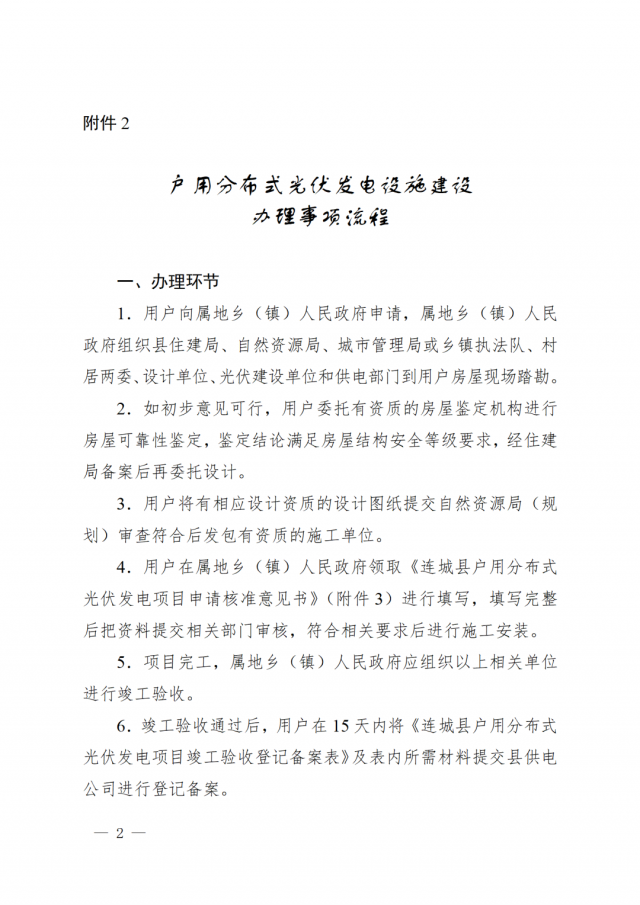 規(guī)范對連城縣戶用光伏項目建設規(guī)范、建設流程進行了詳細規(guī)定: