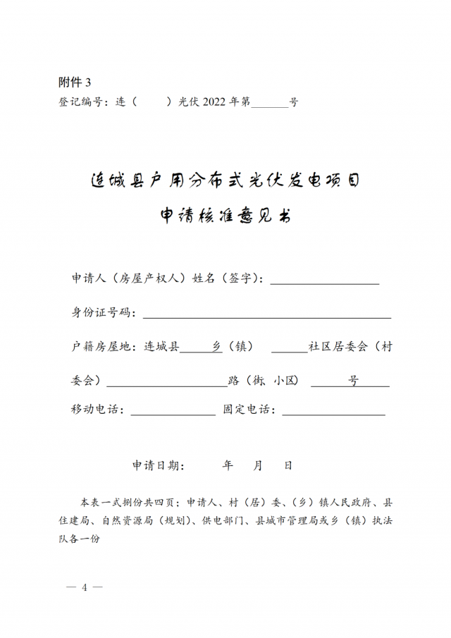 3.連城縣戶用房屋(建筑物)分布式光伏發(fā)電項目申請核準意見書