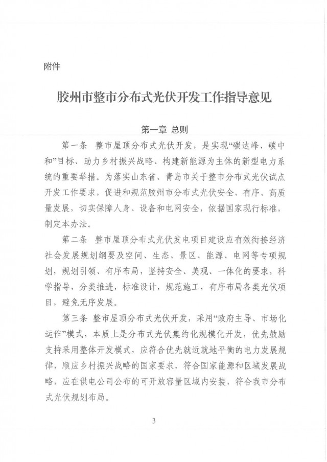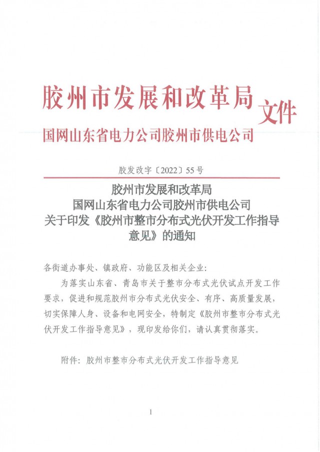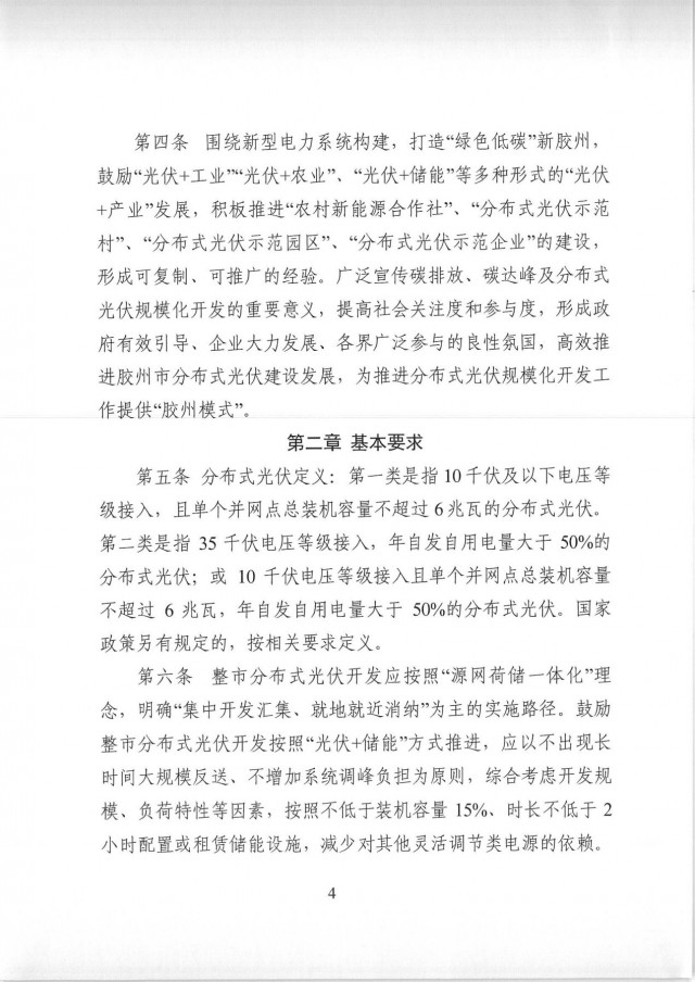 近日,山東膠州市發(fā)改委發(fā)布了《膠州市整市分布式光伏開發(fā)工作指導(dǎo)意見》。文件要求,整市分布式光伏開發(fā)應(yīng)按照“源網(wǎng)荷儲一體化”理念,明確“集中開發(fā)匯集、就地就近消納”為主的實(shí)施路徑。鼓勵整市分布式光伏開發(fā)按照“光伏+儲能”方式推進(jìn),應(yīng)以不出現(xiàn)長時(shí)間大規(guī)模反送、不增加系統(tǒng)調(diào)峰負(fù)擔(dān)為原則,綜合考慮開發(fā)規(guī)模、負(fù)荷特性等因素,按照不低于裝機(jī)容量15%、時(shí)長不低于2小時(shí)配置或租賃儲能設(shè)施,減少對其他靈活調(diào)節(jié)類電源的依賴。