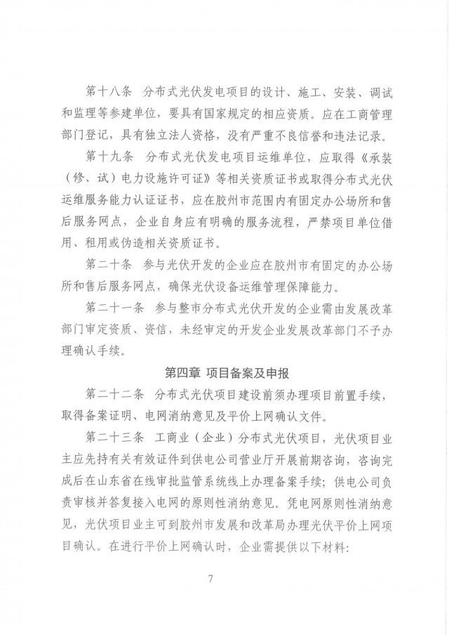 同時(shí)圍繞新型電力系統(tǒng)構(gòu)建,打造“綠色低碳”新膠州,鼓勵“光伏+工業(yè)”“光伏+農(nóng)業(yè)”、“光伏+儲能”等多種形式的“光伏+產(chǎn)業(yè)”發(fā)展,積板推進(jìn)“農(nóng)村新能源合作社”、“分布式光伏示范村”、“分布式光伏示范園區(qū)”、“分布式光伏示范企業(yè)”的建設(shè),形成可復(fù)制、可推廣的經(jīng)驗(yàn)。高效推進(jìn)膠州市分布式光伏建設(shè)發(fā)展,為推進(jìn)分布式光伏規(guī)模化開發(fā)工作提供“膠州模式”。