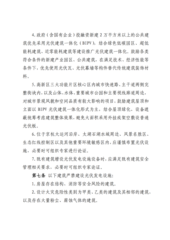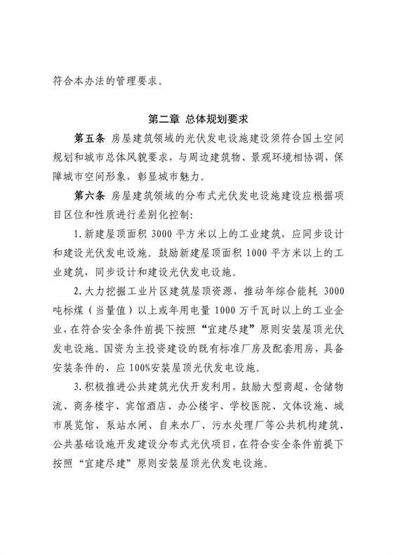 4.政府(含國有企業(yè))投融資新建2萬平方米以上的公共建筑優(yōu)先采用光伏建筑一體化(BIPV),結合綠色低碳園區(qū)、超低能耗建筑、近零能耗建筑等建設推廣光伏建筑一體化。鼓勵各類符合條件的新建產業(yè)園區(qū)、公共建筑,在滿足技術、經濟性能等條件下,優(yōu)先使用光伏瓦、光伏幕墻等構件替代傳統(tǒng)建筑裝飾材料。