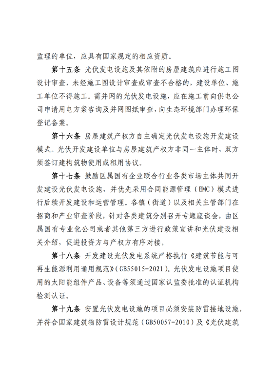 為全面貫徹落實國家、省、市關于“碳達峰”行動的決策部署,規(guī)范高新區(qū)房屋建筑領域分布式光伏發(fā)電設施建設管理,推進全區(qū)光伏發(fā)電開發(fā)利用,根據(jù)國家、省、市屋頂光伏利用相關政策和規(guī)范,結合高新區(qū)工作實際制定本辦法?,F(xiàn)公開征求社會各界的意見,歡迎各界人士提出意見和建議。