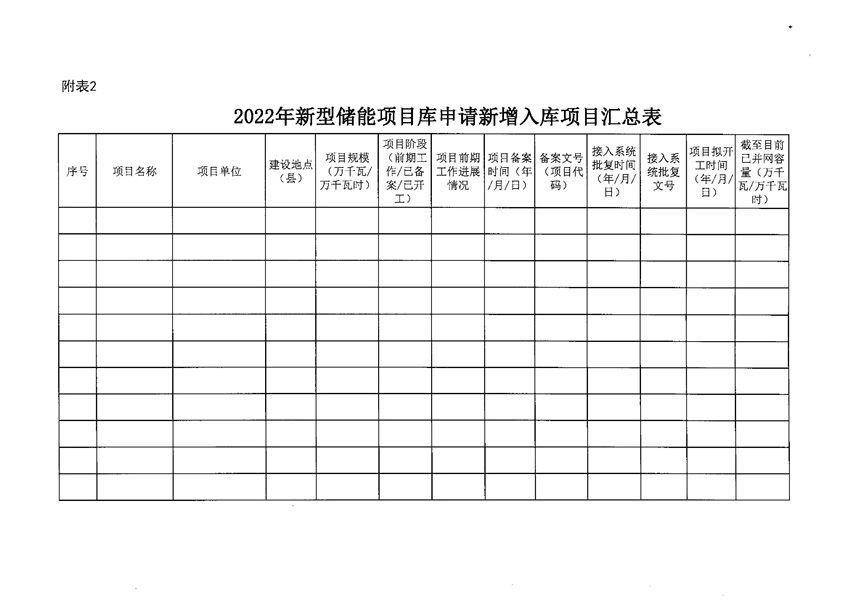 請(qǐng)各企業(yè)認(rèn)真閱讀省能源局通知內(nèi)容,并于10月26日前將《2022年新型儲(chǔ)能可直接入庫(kù)項(xiàng)目匯總表》、《2022年新型儲(chǔ)能申請(qǐng)新增入庫(kù)項(xiàng)目匯總表》及相關(guān)證明材料的電子版(加蓋企業(yè)公章的PDF版和可編輯Excel版)發(fā)送至郵箱:[email protected],逾期不再受理。