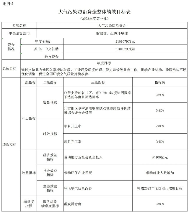 為支持大氣污染防治工作,促進(jìn)大氣質(zhì)量改善,現(xiàn)下達(dá)你省(自治區(qū)、直轄市、新疆生產(chǎn)建設(shè)兵團(tuán),以下簡(jiǎn)稱(chēng)省)2023年大氣污染防治資金,用于支持開(kāi)展減污降碳等方面相關(guān)工作,并就有關(guān)事項(xiàng)通知如下:
