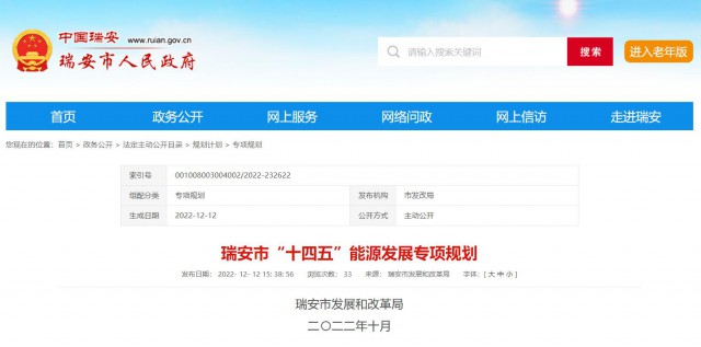12月12日,浙江省瑞安市“十四五”能源發(fā)展專項規(guī)劃印發(fā)。