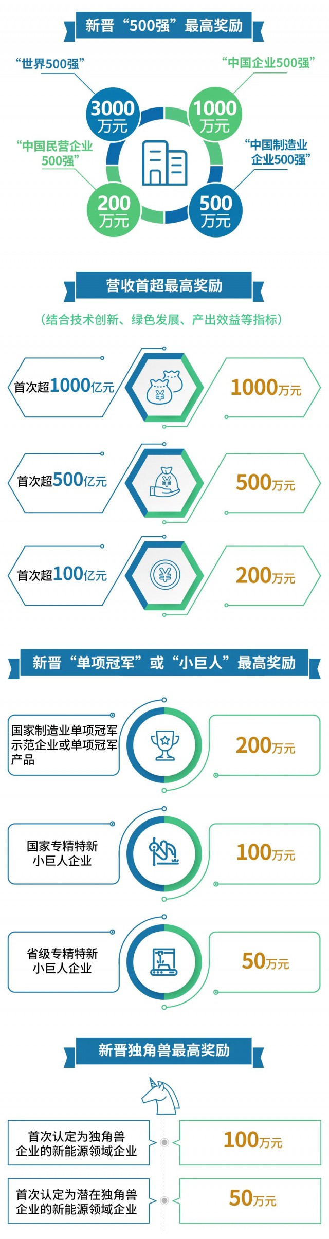 ① 先進(jìn)制造業(yè)、總部經(jīng)濟(jì)等項目:按新注冊設(shè)立的獨(dú)立法人企業(yè)投產(chǎn)1年內(nèi)地方貢獻(xiàn)總額的3%獎勵,單個項目最高獎勵500萬元;分期建設(shè)的,按一期地方貢獻(xiàn)獎勵。
