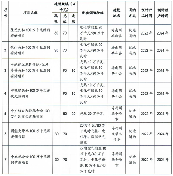 2022年8月24日,青海省能源局在“關(guān)于加強(qiáng)海南州清潔能源產(chǎn)業(yè)建設(shè)的建議”——省十三屆人民代表大會(huì)第七次會(huì)議第224014號(hào)建議答復(fù)的函上表示,省第二批大型風(fēng)電光伏基地取得重大進(jìn)展,7個(gè)項(xiàng)目、合計(jì)700萬(wàn)千瓦納入第二批以沙漠、戈壁、荒漠地區(qū)為重點(diǎn)的大型風(fēng)電光伏基地建設(shè)項(xiàng)目清單,其中隆發(fā)共和100萬(wàn)千瓦源網(wǎng)荷儲(chǔ)項(xiàng)目、中能建江蘇設(shè)計(jì)院/江蘇美科共和100萬(wàn)千瓦源網(wǎng)荷儲(chǔ)項(xiàng)目、伏山共和100萬(wàn)千瓦源網(wǎng)荷儲(chǔ)項(xiàng)目、中電建共和100萬(wàn)千瓦光伏光熱項(xiàng)目共400萬(wàn)落地海南州共和縣。