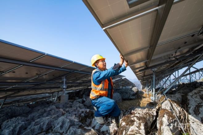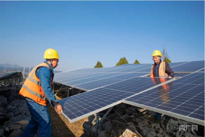 施工人員正在安裝光伏組件(央廣網(wǎng)發(fā) 史開心 攝)