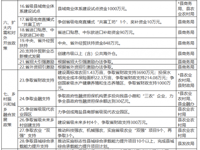 六、擴大內(nèi)需和對外開放政策(由縣商務局牽頭實施)