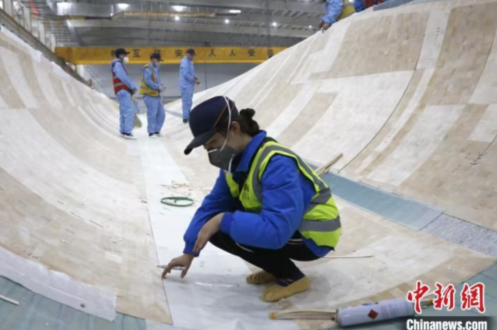 3月7日,在新疆木壘縣東方風電新能源有限公司工人們正在進行風電葉片前期鋪層工作。陶拴科攝