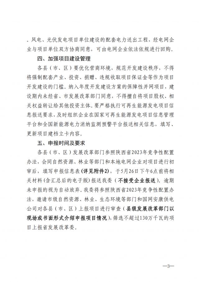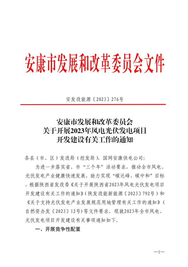 5月15日,安康市發(fā)展和改革委員會(huì)發(fā)布了《關(guān)于開展2023年風(fēng)電光伏發(fā)電項(xiàng)目 開發(fā)建設(shè)有關(guān)工作的通知》,其中提到了近日,陜西省發(fā)改委發(fā)布了《關(guān)于開展陜西省2023年風(fēng)電光伏發(fā)電項(xiàng)目開發(fā)建設(shè)有關(guān)工作》的通知。