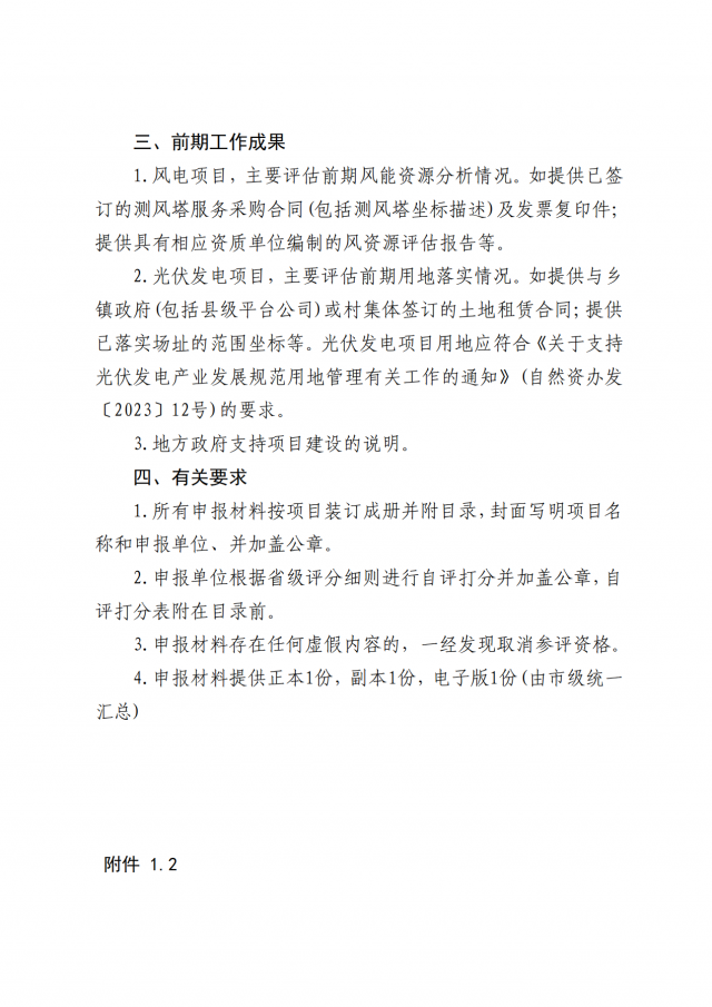 根據(jù)發(fā)布《陜西省2023年風(fēng)電光伏發(fā)電項(xiàng)目保障性并網(wǎng)規(guī)模競(jìng)爭性配置辦法》顯示,此次項(xiàng)目的申報(bào)范圍為陸上風(fēng)電項(xiàng)目、地面光伏發(fā)電項(xiàng)目。申報(bào)要求為項(xiàng)目單體規(guī)模原則上不小于5萬千瓦、不超過20萬千瓦;縣(市、區(qū))自然資源、林業(yè)、生態(tài)環(huán)境等部門出具申報(bào)項(xiàng)目具備建設(shè)條件的說明;縣(市、區(qū))政府出具支持項(xiàng)目建設(shè)的說明;企業(yè)出具項(xiàng)目建設(shè)的承諾函。